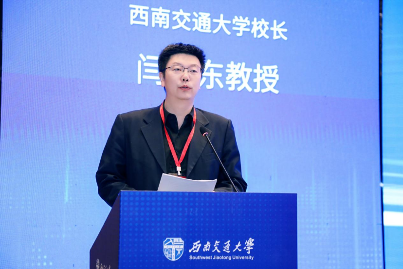 闫学东校长在致辞中回顾了学校的辉煌办学历史与在轨道交通领域的深厚积淀。他指出,学校深度参与了青藏铁路、京沪高铁、川藏铁路等国家重大工程,构建了完善的学科体系与创新平台,将持续强化铁路安全科技创新,推动产教融合、科教融汇,为铁路运营安全提供坚实的人才与技术支撑。