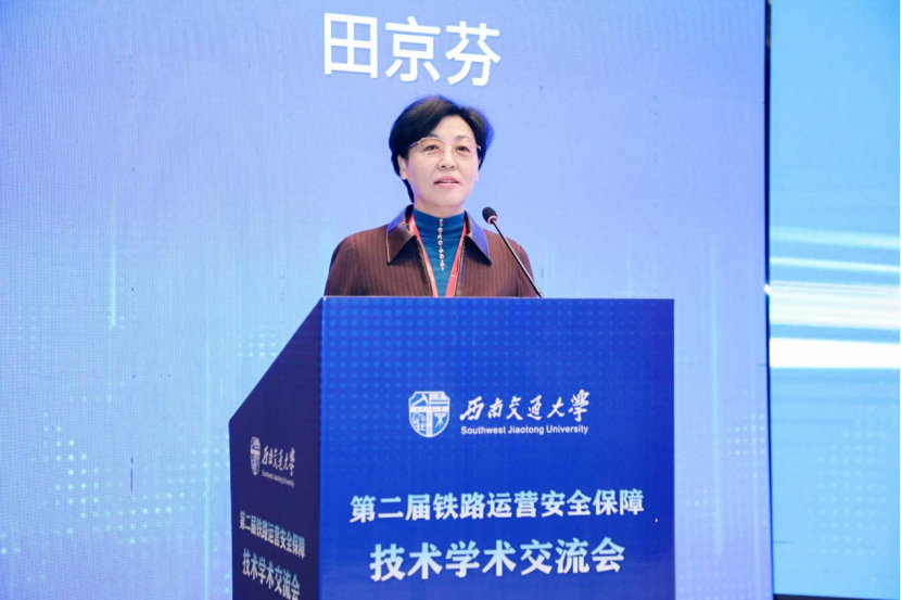 开幕式由西南交通大学副校长王平教授主持。中国铁道学会党委委员、常务理事田京芬在致辞中谈到,铁路运营安全是支撑交通强国建设的重要保障,不断提升铁路运营管理的现代化、智能化、精细化水平,不仅是一个行业的发展问题,更是关乎国家核心竞争力、经济社会可持续发展和人民福祉的重大战略问题。她呼吁与会代表深入交流、凝聚共识,为铁路高质量发展贡献智慧与力量。